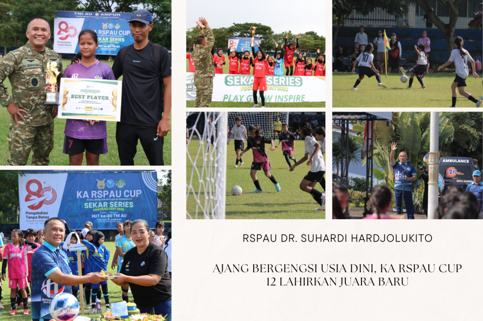 Setelah sukses menggelar turnamen kelompok umur 15 (U-15) pada pekan sebelumnya, RSPAU dr. S. Hardjolukito kembali melanjutkan rangkaian KA RSPAU CUP – Sekar Series Football Fest 2026 dengan menghadirkan kompetisi kelompok umur 12 (U-12). (10/4/26). Kegiatan ini menjadi bagian dari pembinaan berjenjang bagi atlet muda sekaligus menyemarakkan peringatan HUT ke-80 TNI Angkatan Udara.